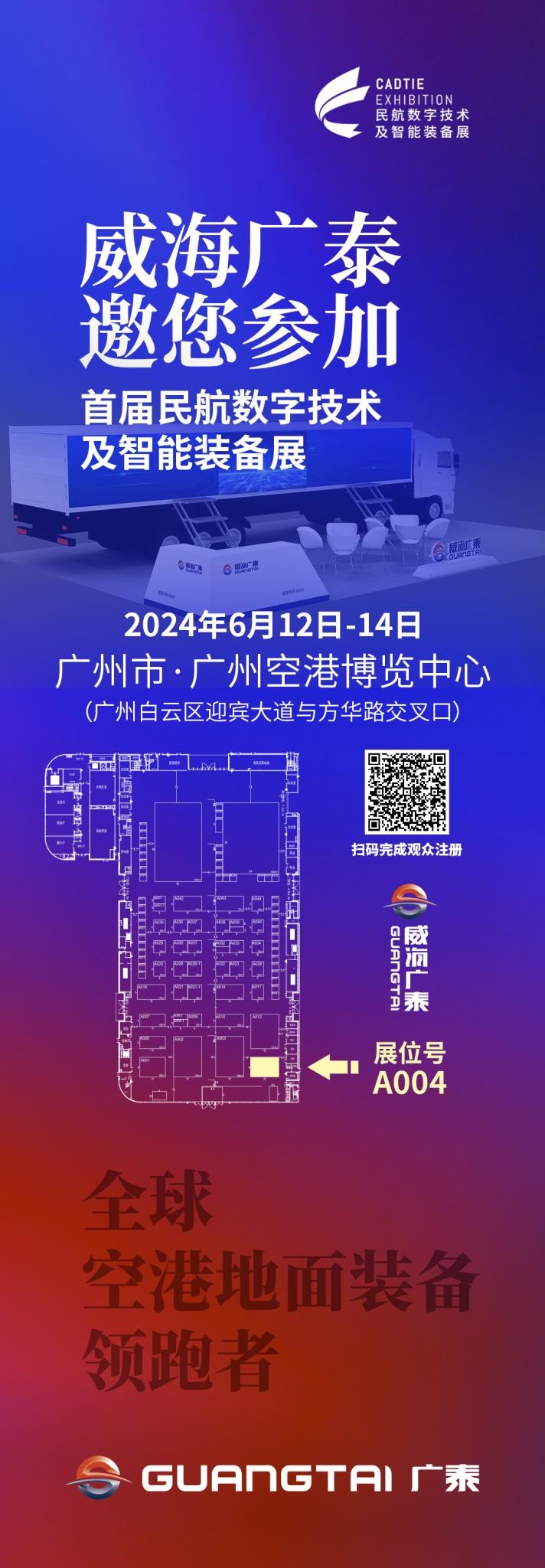 當數字技術的浪潮席卷全球民航業也迎來了前所未有的變革在這個充滿機遇與挑戰的時代威海廣泰誠摯邀請您蒞臨展位A004共同探索民航智能新紀元的無限可能!