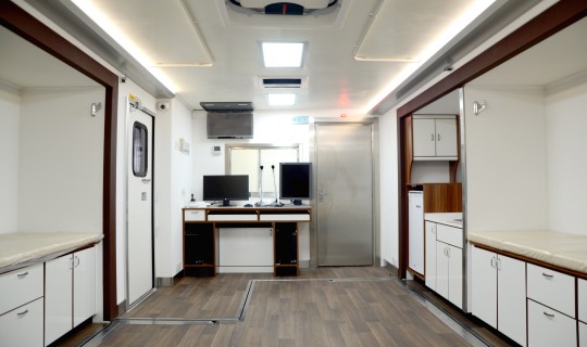 廣泰擴(kuò)展方艙式體檢車,秉承精湛的車輛改裝工藝,將軍品醫(yī)療方艙與民品醫(yī)療體檢完美融合,針對客戶個性化設(shè)計綜合解決方案。